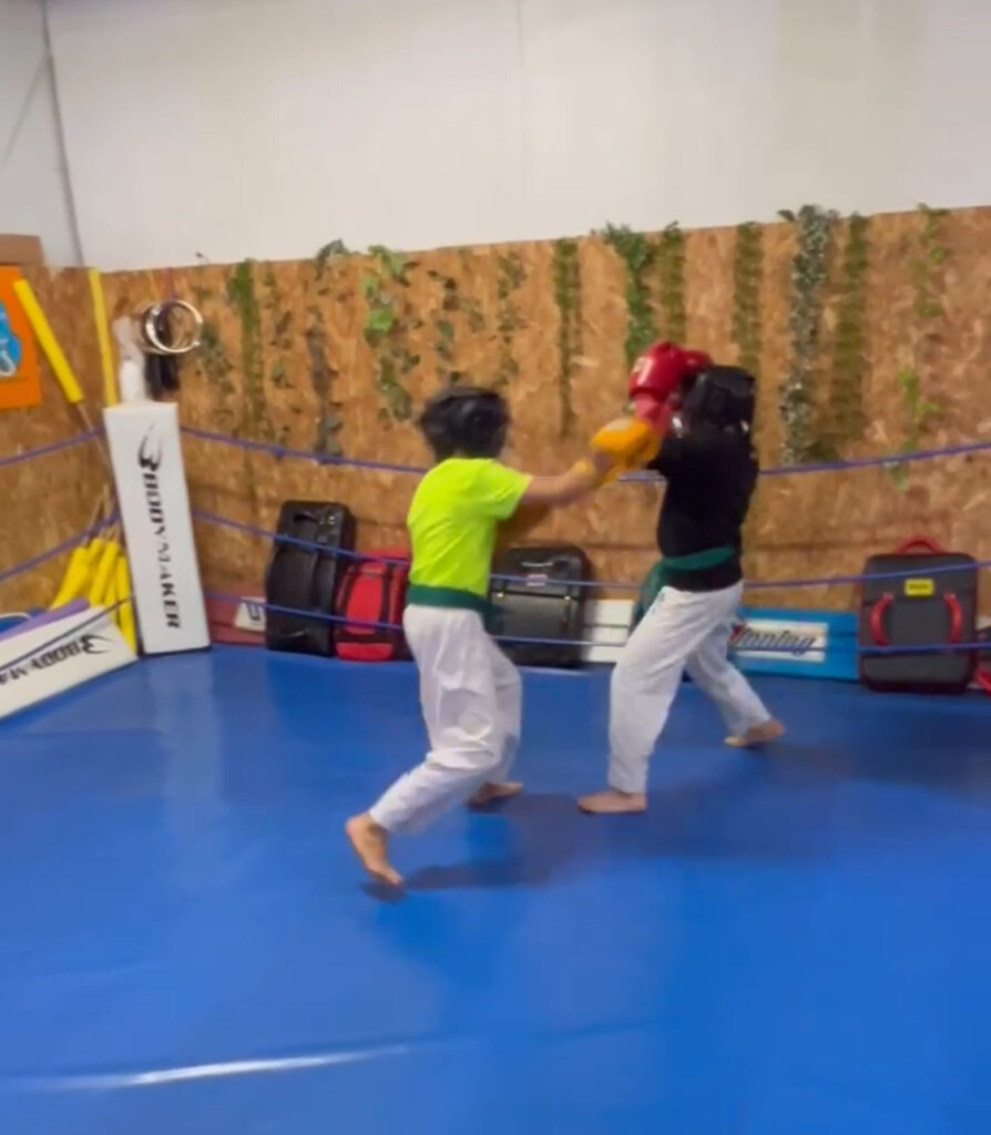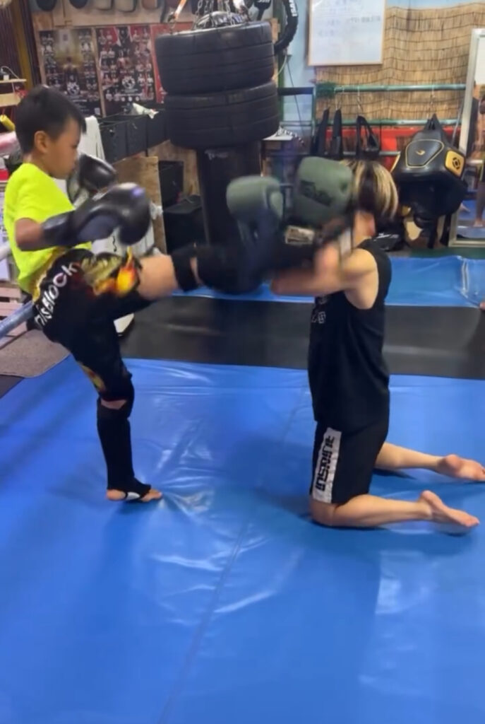 キッズは基本稽古、身体操作、ミット打ちをメインに行っています