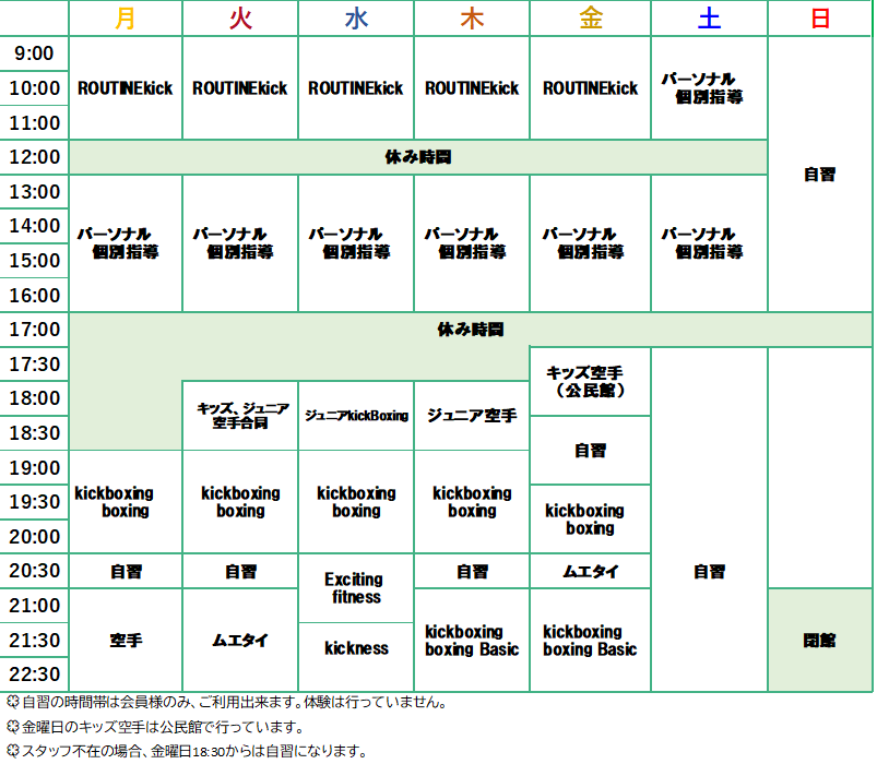 ※火曜日は18:00~19:00キッズ、ジュニア合同で稽古します。